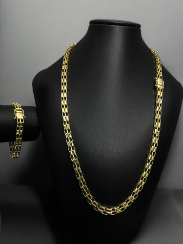 Conjunto tijolinho duplo 10mm fecho gaveta banhado a ouro18k