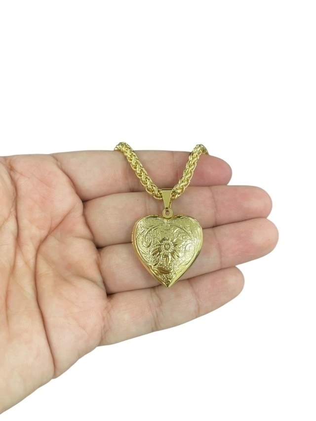 PINGENTE CORACÃO RELICARIO - MÉDIO - Banhado em ouro 18k