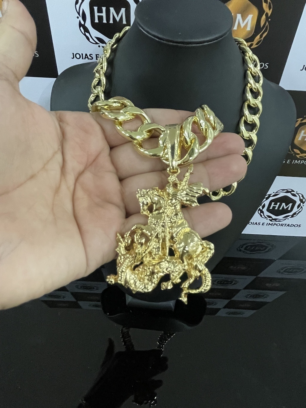 PINGENTE SÃO JORGE - GRANDE - Banhado em ouro 18k